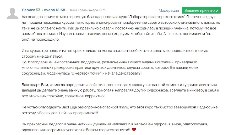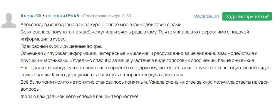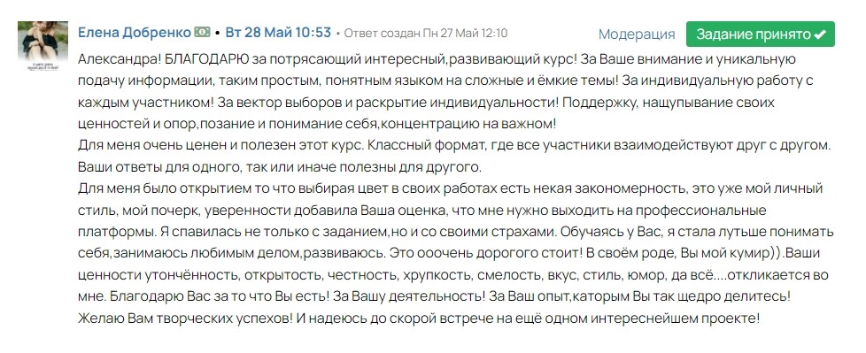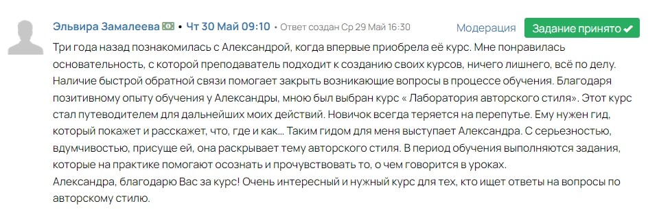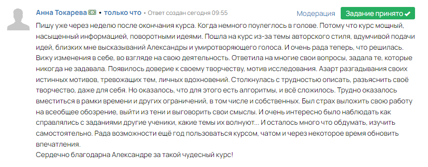 Александра, примите мою огромную благодарность за курс "Лаборатория авторского стиля".