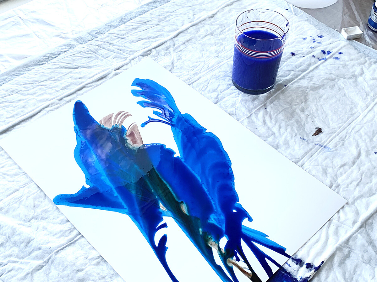 Также рисовать нитями можно акварельными и спиртовыми чернилами.